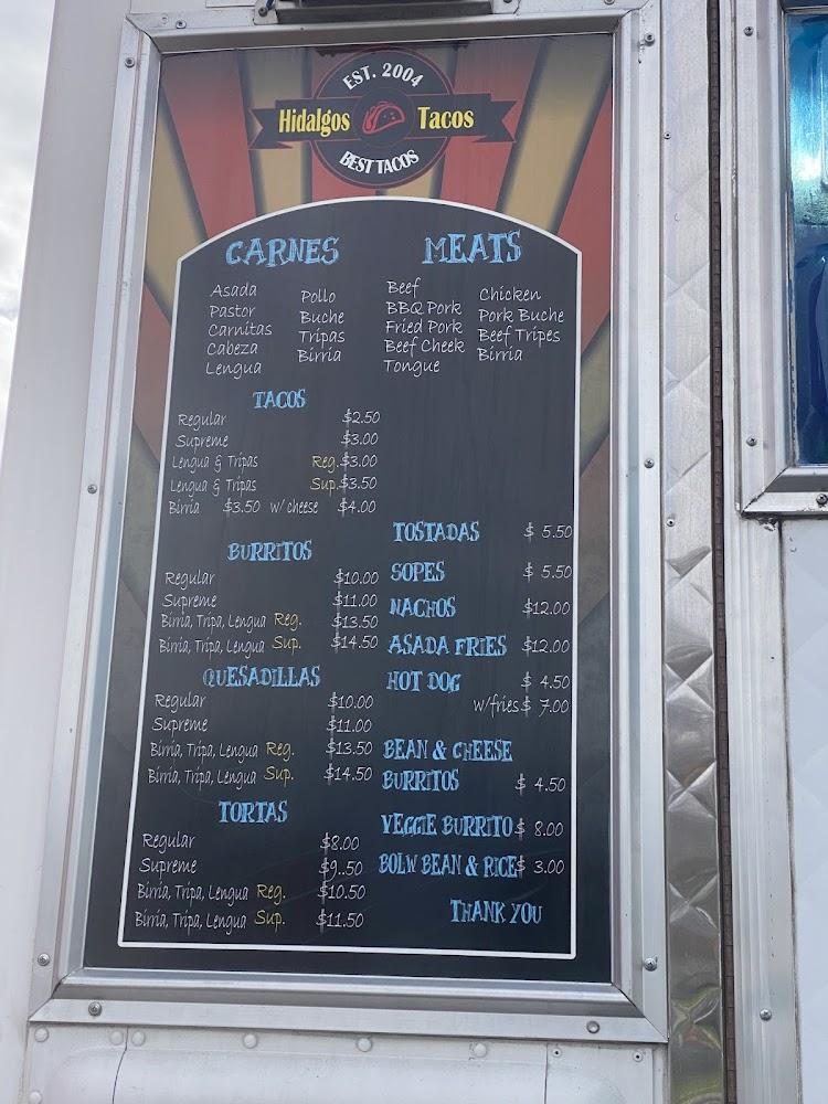 The menu at Hidalgo Taco Truck is a delightful journey through traditional Mexican cuisine. It highlights various offerings, including tacos, burritos, quesadillas, and sopes. Popular choices include carne asada, carnitas, and birria, all prepared with great care. The average price for dishes hovers around $6.45, making it affordable for most.